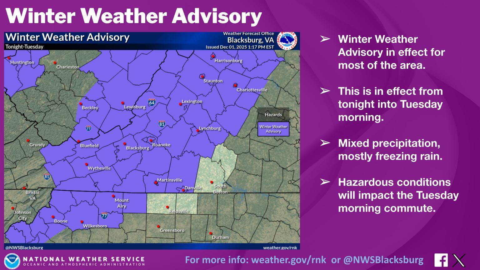 Winter Weather Advisory for Tuesday Morning